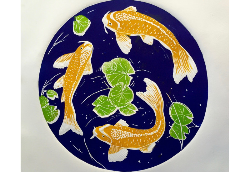 Koi Fish<br>Linocut<br>18” Round