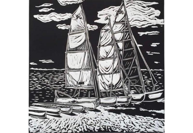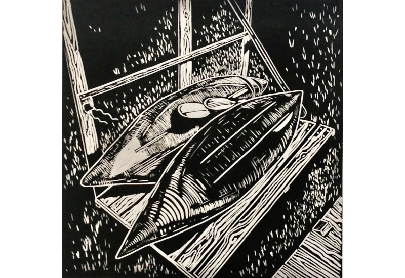 Kayaks<br>Linocut<br> 12” x 12”