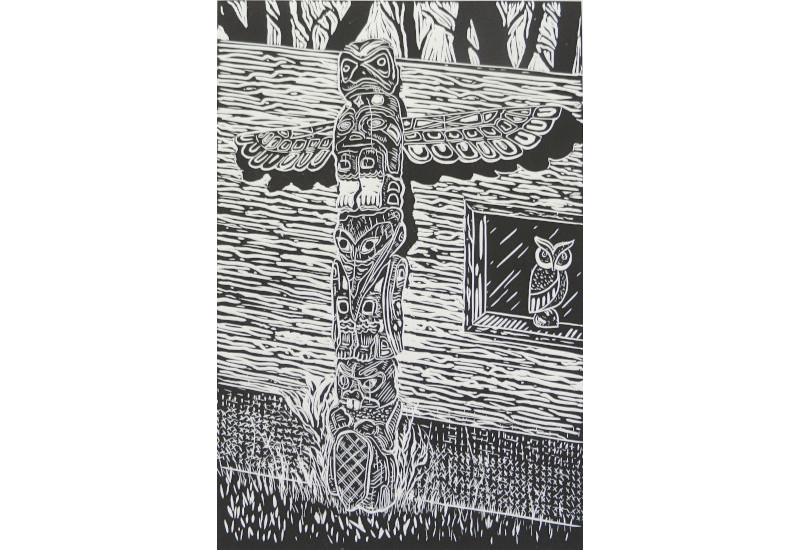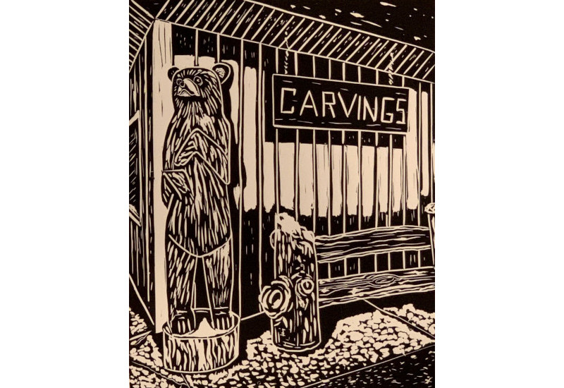 Carvings<br>Linocut<br> 12” x 9”