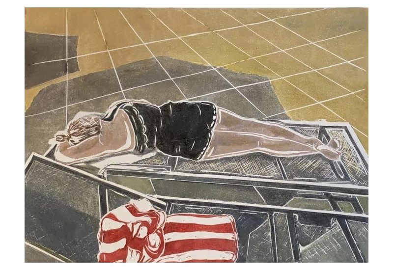 The Long Day<br>Linocut<br>16” x 18”